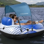 Ciesz się latem w maksymalnym komforcie z dmuchanym kołem BESTWAY z daszkiem i oparciem. Ten wytrzymały, biało-niebieski pierścień z PVC zapewnia przyjemny cień, wygodne podparcie pleców oraz uchwyt na napój dla doskonałego relaksu na wodzie. Dzięki zaworowi bezpieczeństwa i systemowi CLASP 'N GO możesz łatwo połączyć go z innym kołem.