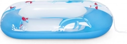 Ta dmuchana łódka z wesołym motywem delfina zachęca do długotrwałej zabawy w wodzie. Idealna do użycia w basenie, nad morzem lub na jeziorze. Manewrowanie jest łatwe dzięki przedniemu sznurowi, który zwiększa wygodę użytkowania.