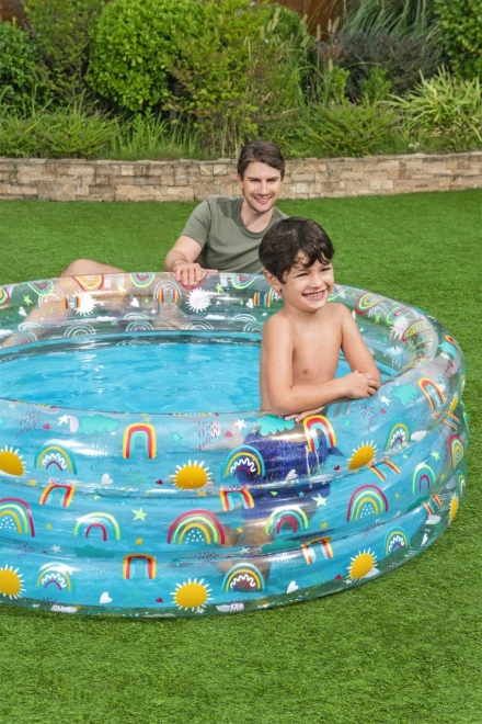 Zapewnij swoim dzieciom idealne letnie wrażenia z dmuchanym basenem Tropical Bestway, który pasuje do każdego ogrodu. Ten przezroczysty basen z atrakcyjnymi motywami tęczy i słońca został zaprojektowany na nieskończone godziny zabawy i ochłody podczas upalnych dni.