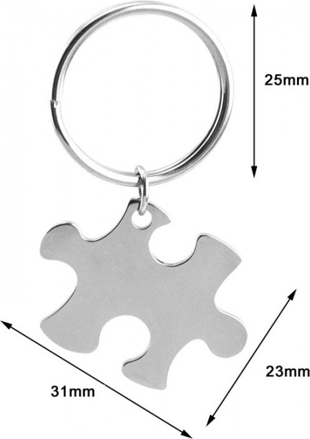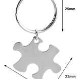 Elegancki i oryginalny stalowy brelok do kluczy w kształcie puzzla, wykonany z stali chirurgicznej z gładkim wykończeniem powierzchni.