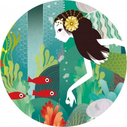 - Magiczny motyw podwodnego raju z syrenami i morskimi stworzeniami.