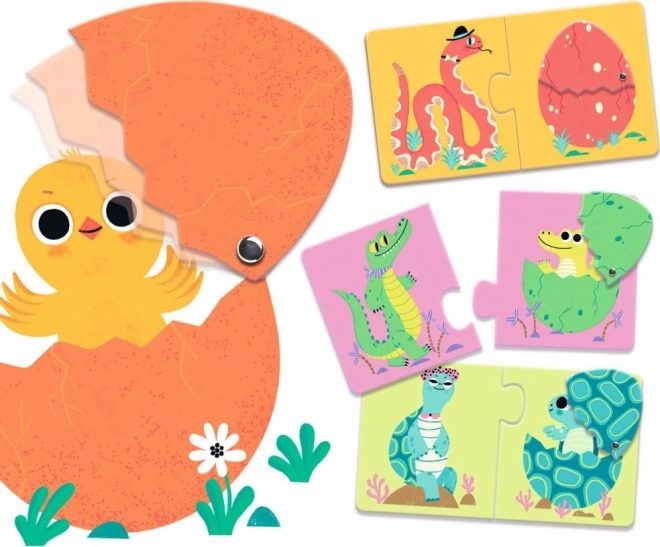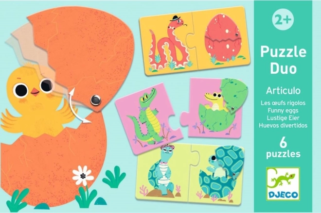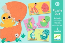 Wesołe duo puzzle „Funny eggs” łączą zwierzątka z ich jajkami lub młodymi w proste pary. Dzieci w zabawny sposób ćwiczą rozpoznawanie kształtów i obrazków, pamięć wzrokową oraz koordynację ręka–oko. Dzięki dużym, solidnym elementom świetnie leżą w dłoni nawet najmłodszym.