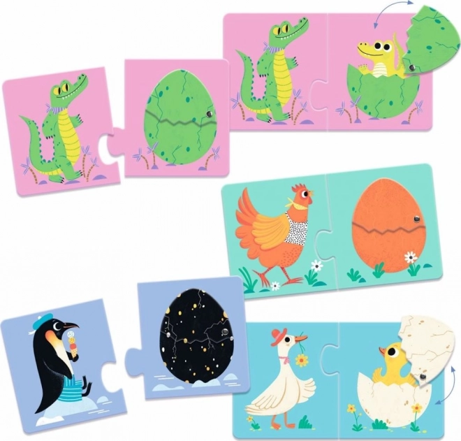 Kolorowe ilustracje wspierają słownictwo i opowiadanie historii – „kto wykluwa się z jajka?”. Gra idealna do samodzielnego odkrywania i wspólnych chwil z rodzicami. Praktyczne pudełko pozwala wygodnie zabrać puzzle ze sobą.