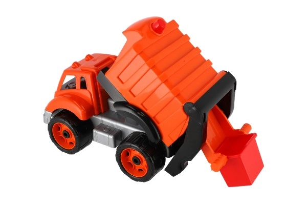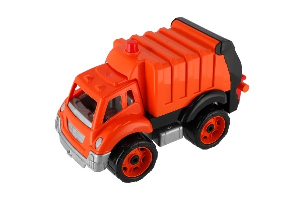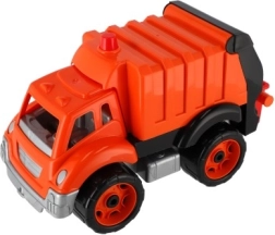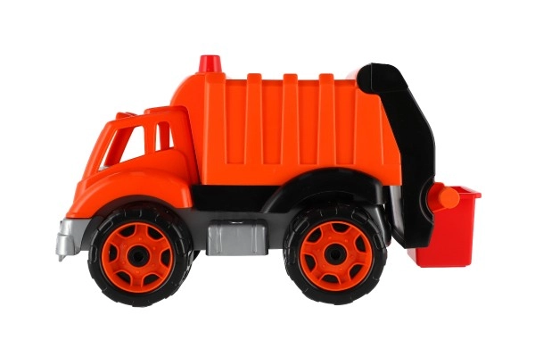 Odkryj wytrzymałą plastikową śmieciarkę, z którą dzieci spędzą mnóstwo czasu na zabawie w ogrodzie, na piaskownicy i w pokoju. Intensywnie pomarańczowy design, solidne koła i kompaktowe wymiary wspierają bezpieczną i kreatywną zabawę.