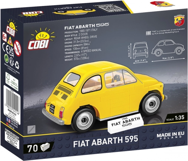 Ten szczegółowy model słynnego Fiata ABARTH 595 jest w całości wykonany z klocków COBI i wyróżnia się wysoką jakością. Zamiast naklejek zastosowano odporne, nieścieralne i nieblaknące nadruki, które pozostają estetyczne nawet przy intensywnej zabawie. Gotowy model ma około 9 cm długości, a w zestawie znajduje się również tabliczka z nazwą pojazdu.