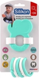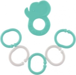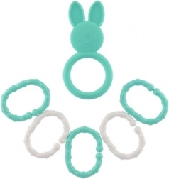 Ten lekki i łatwy do chwytania zestaw łączy miękką silikonową gryzaczkę w kształcie zwierzątka z kilkoma plastikowymi kółkami, które można ze sobą łączyć. Różne faktury i kształty stymulują dotyk, wzrok i słuch, przynosząc ulgę wrażliwym dziąsłom podczas ząbkowania.