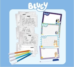 Odkryj zabawną szkołę rysunku BLUEY – kreatywny zestaw, dzięki któremu dzieci nauczą się krok po kroku rysować ulubionego Bluey'ego i inne postacie. W zestawie znajduje się zeszyt ćwiczeń z rosnącym poziomem trudności, 4 tablice suchościeralne do nieskończonych prób oraz dołączone pisaki do kolorowania.