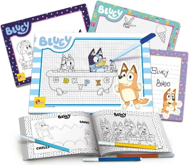 Ten kreatywny zestaw ucieszy wszystkich fanów serialu BLUEY. Dzięki zeszytowi ćwiczeń z szablonami ułożonymi według stopnia trudności dzieci łatwo opanują podstawowe kształty i pociągnięcia. Rysowanie na tablicach suchościeralnych jest wielokrotnego użytku – wystarczy narysować, zetrzeć i zacząć od nowa, więc trening i zabawa nigdy się nie kończą.