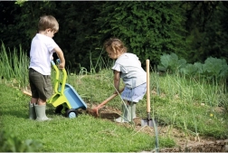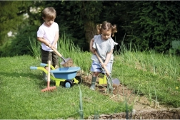 Ta dziecięca taczka o wymiarach 69 x 30 x 32 cm zapewnia nie tylko wspaniałą zabawę, ale także praktyczne narzędzie do nauki ogrodnictwa. Wykonana z wysokiej jakości plastiku, co czyni ją trwałą i odpowiednią do zabaw na świeżym powietrzu.
