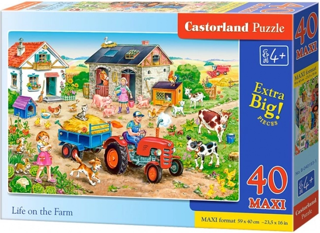 Duże, kolorowe puzzle z motywem życia na farmie ucieszą małych konstruktorów. Zestaw zawiera 40 elementów MAXI, a po ułożeniu tworzy obrazek o wymiarach 59 × 40 cm. Idealne dla dzieci od 4 lat – duże elementy dobrze leżą w dłoni, a wysokiej jakości wykonanie CASTORLAND gwarantuje trwałość i bezpieczeństwo.