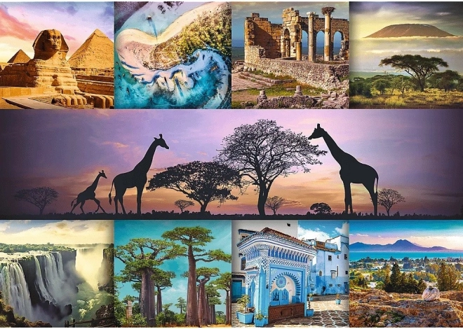 Przenieś się do świata afrykańskiego piękna z puzzlami Kolaż Afryka, które pozwalają odkryć majestatyczne scenerie i ikoniczne symbole tego fascynującego kontynentu. Dzięki 1000 elementom układanie jest nie tylko zabawą, ale i wyzwaniem dla każdego miłośnika puzzli.
