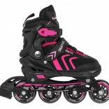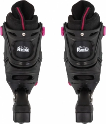 - Bezpieczeństwo i stabilność: półsztywny but, potrójne zapięcie, hamulec w prawej łyżworolce.