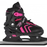 Komfort zapewnia profilowana wkładka z miękką pianką EVA pokrytą przyjemnym materiałem Velvet. Potrójny system zapięcia – sznurowadła, pasek na rzep i bezpieczna klamra – trzyma stopę pewnie i niezawodnie. Aluminiowa płoza pod kółka, koła PU 64×24 mm o twardości 85A oraz łożyska ABEC 7 gwarantują płynną i stabilną jazdę. Ostrza do jazdy na lodzie z nierdzewnej stali są łatwe w pielęgnacji i zapewniają świetny poślizg.