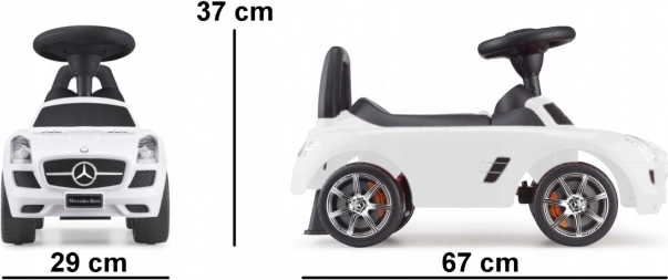 Jeździk Mercedes-Benz SLS AMG w białej wersji został starannie zaprojektowany z dbałością o każdy szczegół, co znacząco przyczynia się do pozytywnych wrażeń małego kierowcy. Jego wytrzymała i lekka konstrukcja zapewnia długotrwałą zabawę. Dzięki ergonomicznemu designowi bez ostrych krawędzi, model ten jest nie tylko bezpieczny, ale także bardzo odporny na uszkodzenia.