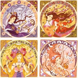 - Wprowadzenie do dzieł Alfonse'a Muchy - Młode kobiety ożywają pośród zieleni.