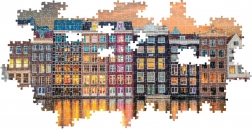 Panoramiczne puzzle Lśniący Amsterdam uchwycają magiczną atmosferę kamienic nad kanałem o zachodzie słońca. Dzięki pierwszorzędnemu wykonaniu marki CLEMENTONI możesz liczyć na ostre kolory, subtelne detale i solidne elementy, które doskonale do siebie pasują.