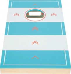 Ta wysokiej jakości drewniana plansza łączy dwie ulubione aktywności w jednym kompaktowym wydaniu. Po jednej stronie zagrasz w cornhole – rzucanie materiałowych woreczków do otworu, po drugiej w hokej stołowy – wystrzeliwanie krążka za pomocą gumki w kierunku celów. Dzięki oznaczeniu punktów strzałkami zamiast cyfr liczenie wyników jest proste nawet dla młodszych dzieci.