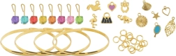 - 4 bransoletki, 12 zawieszek, 8 zawieszek z kolorowymi kamykami, kółeczka do mocowania zawieszek