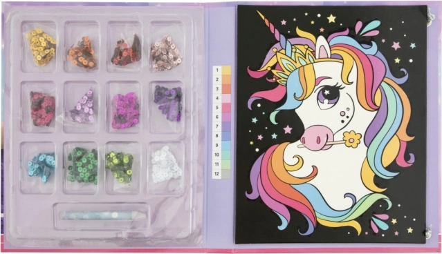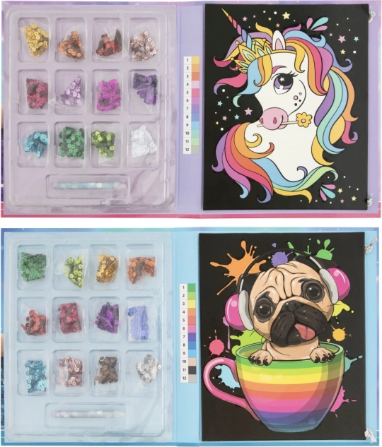 Odkryj prosty i przyjemny sposób, aby zaangażować dzieci w tworzenie. Z tym zestawem do tworzenia według numerów powstaną piękne obrazki z motywem jednorożca lub pieska. Wystarczy dopasować kolory do numerów i za pomocą długopisu dozującego umieszczać kolorowe kropki we właściwych miejscach.