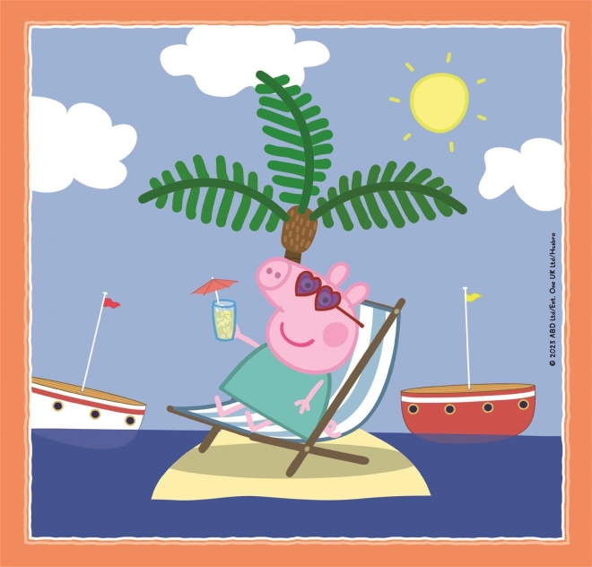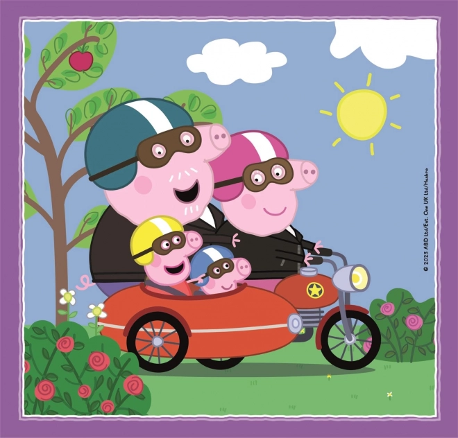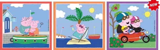 Spraw dzieciom radość zestawem trzech puzzli z ulubionym motywem Świnka Peppa. Elementy są precyzyjnie wycięte i łatwe do układania, dzięki czemu nadają się także dla początkujących małych konstruktorów. Wysokiej jakości materiały i ekskluzywna technika druku gwarantują długotrwale piękne, wyraźne i nasycone kolory.