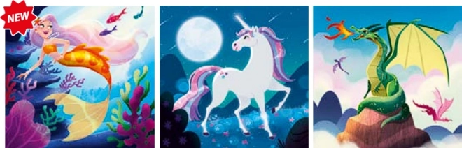 Zestaw Clementoni zapewnia radosne układanie z motywem fantastycznych istot, które pobudzają wyobraźnię i kreatywność. Trzy oddzielne puzzle o tej samej liczbie elementów i wymiarze z łatwością ułożą także młodsze dzieci, jednocześnie wzmacniając koncentrację i motorykę małą.