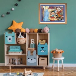 Kolorowa scena z klasycznej bajki motywuje dzieci do układania i sprawia, że puzzle po ułożeniu stanowią atrakcyjną dekorację.