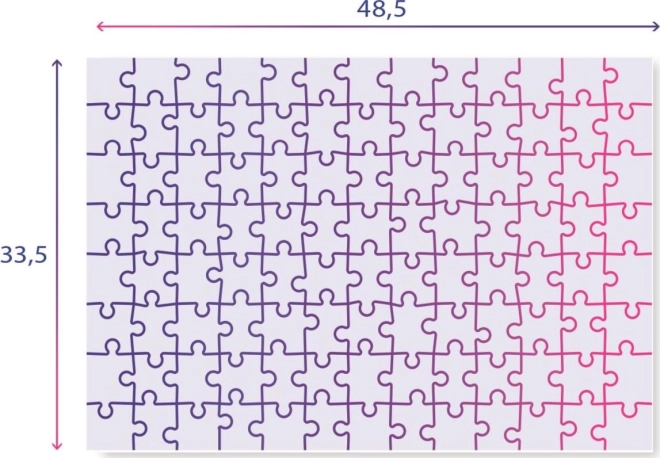Format 104 elementów świetnie sprawdza się dla początkujących i bardziej zaawansowanych małych układaczy. Puzzle wspierają motorykę małą, logiczne myślenie oraz cierpliwość. Po ułożeniu mają wymiary około 48,5 × 33,5 cm – idealny rozmiar do prezentacji na stole lub podkładce.