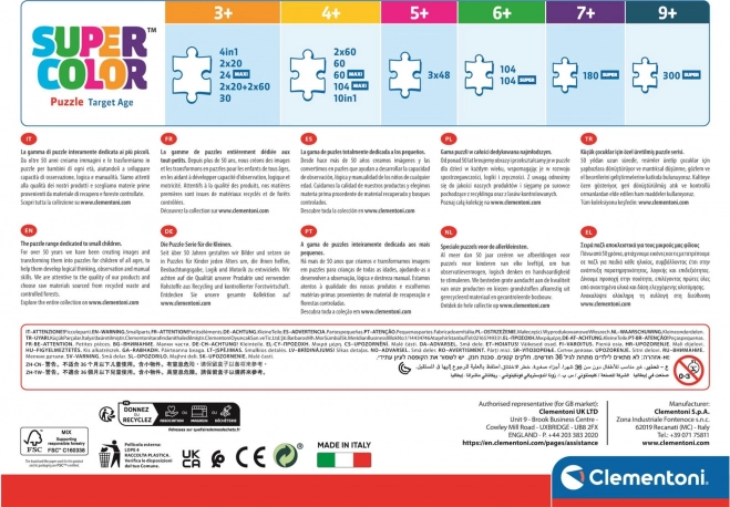 Odkryj zabawny świat prehistorii z dziecięcymi puzzlami CLEMENTONI SuperColor. Dzięki wysokiej jakości materiałom i doskonałemu nadrukowi oferują żywe kolory, które zachwycą dzieci. Puzzle z 104 elementami rozwijają sprawność manualną, cierpliwość i umiejętność obserwacji. Gotowy obraz ma wymiary ok. 48,5 × 33,5 cm.