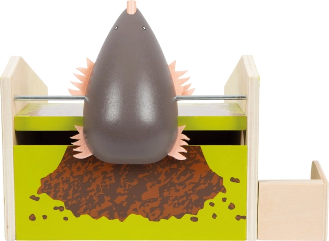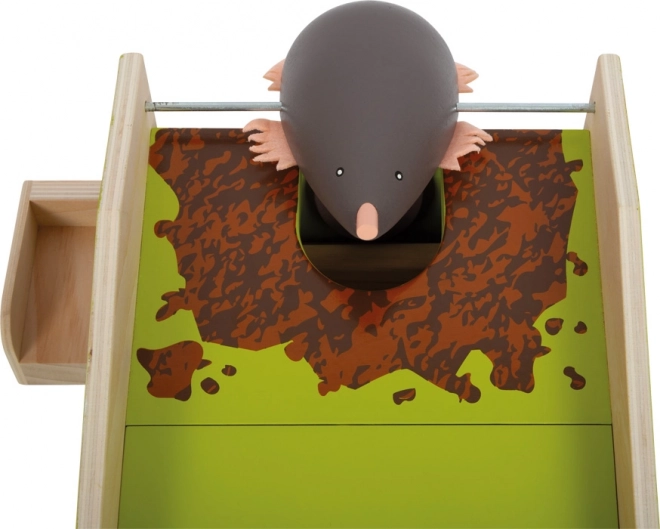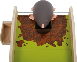 Specjalny mechanizm po przejechaniu piłeczki przez tunel unosi krecika, który „macha” – natychmiastowa informacja zwrotna motywuje dzieci do ponownej gry.