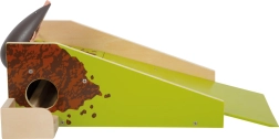 Wytrzymała rampa z tunelem i bezpiecznymi materiałami (drewno, metal, filc) wytrzyma codzienną zabawę i wspiera rozwój motoryki oraz koncentracji.