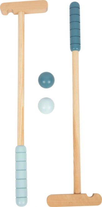 Dwa drewniane kije z wygodnym uchwytem i dwie piłeczki umożliwiają sprawiedliwe pojedynki i wspólną zabawę rodzeństwa lub przyjaciół.