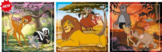 Ten zestaw zawiera trzy oddzielne puzzle z ulubionymi motywami z filmów DISNEY, które ucieszą małych miłośników układanek. Dzięki tej samej wielkości i liczbie elementów poszczególne obrazki są łatwo wymienne, a dzieci mogą wielokrotnie ćwiczyć układanie bez zbędnej frustracji.