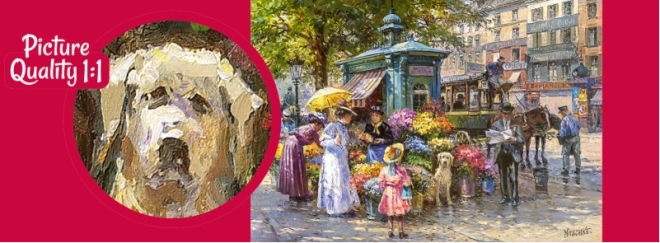 Zanurz się w dopracowanej ilustracji tętniącego życiem targu kwiatowego. Puzzle z 1000 elementów oferują przyjemne wyzwanie dla początkujących i zaawansowanych miłośników układania oraz stanowią świetny sposób na odpoczynek i trening koncentracji.