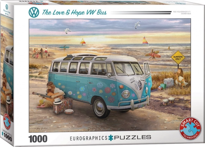 Ciesz się dopracowaną układanką marki Eurographics z motywem VW Bus – Miłość i nadzieja. Dzięki specjalnemu, bezsiatkowemu wykrojnikowi elementy mają unikatowe kształty i nie zawsze wyrównane krawędzie, co zapewnia bardziej wymagające i ciekawsze doświadczenie z układania.