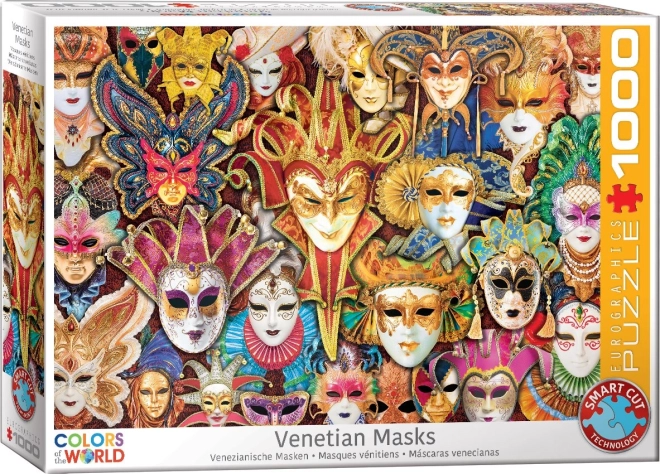 Podejmij wyzwanie z puzzlami EUROGRAPHICS z motywem weneckich masek. Dzięki nieregularnym kształtom elementów i wykrojnikowi, który nie odwzorowuje standardowej siatki, układanka oferuje wyższy poziom trudności i wyjątkowe wrażenia. Zestaw zawiera 1000 elementów, a po ułożeniu ma wymiary około 68 × 48 cm.
