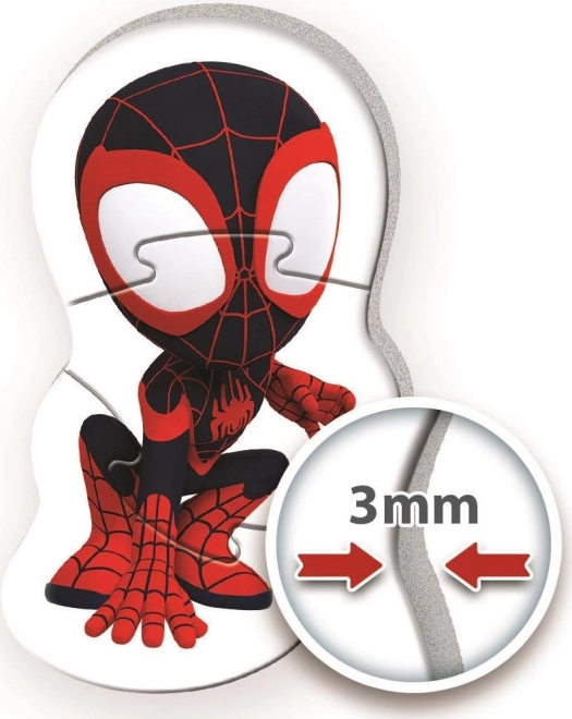 Odkryj cztery wykrojone puzzle dla najmłodszych z bohaterami z MARVEL SPIDEY i jego niesamowici przyjaciele w wariantach 3, 6, 9 i 12 elementów. Duże, o grubości 3 mm piankowe elementy są bezpieczne i łatwe do chwytania, idealne na pierwsze układanki. Pomagają dzieciom rozwijać motorykę małą, koordynację oko–ręka oraz orientację przestrzenną – zabawka łącząca naukę i zabawę.