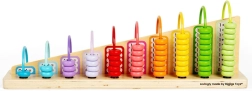 Pomaga dzieciom w nauce podstawowych umiejętności arytmetycznych przy użyciu kolorowych koralików i paneli matematycznych.