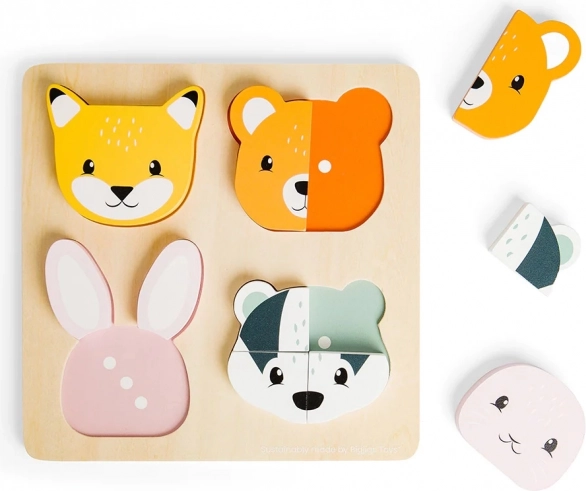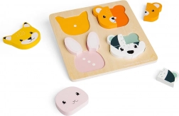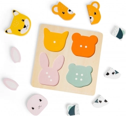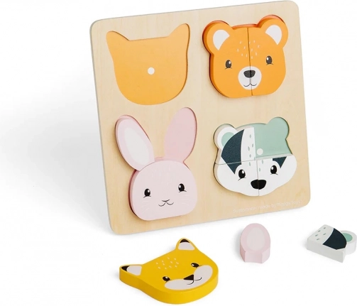Te piękne 10-częściowe drewniane puzzle wkładane są idealne dla małych odkrywców, którzy chcą nauczyć się rozpoznawać kształty, kolory i podstawowe liczby. Dzieci będą zachwycone uroczymi zwierzątkami, takimi jak lis, miś, królik i borsuk, które są podzielone na elementy i muszą być umieszczone w odpowiednich otworach. Każdy element ma oznaczenie za pomocą kropek, co pomaga dzieciom, które jeszcze nie znają liczb.
