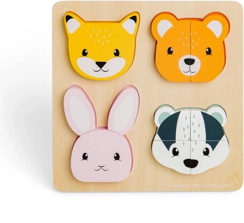 Drewno użyte do produkcji pochodzi z etycznie pozyskiwanego, zrównoważonego lasu i spełnia europejskie normy bezpieczeństwa. Jest malowane nietoksycznymi farbami i lakierami. Puzzle są certyfikowane FSC® (Forest Stewardship Council), co gwarantuje, że drewno nie zostało pozyskane nielegalnie i pochodzi z lasów zarządzanych odpowiedzialnie i ekologicznie.