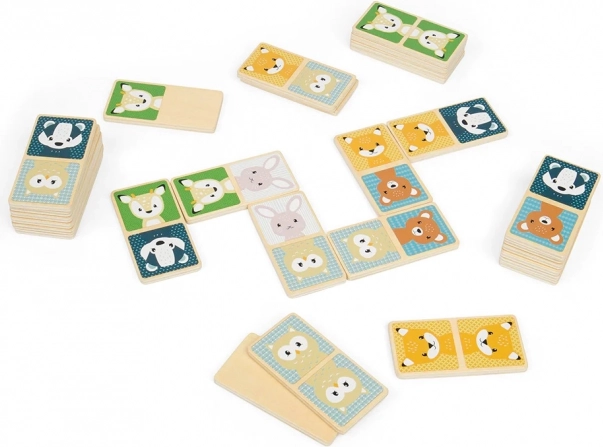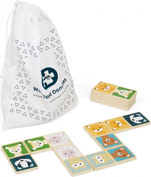 Wyruszcie z dziećmi do świata zwierząt z drewnianym domino Leśne zwierzątka. Każdy z 28 elementów jest ozdobiony kolorowymi obrazkami zwierząt, a wszystkie elementy wygodnie mieszczą się w małych dziecięcych rękach.