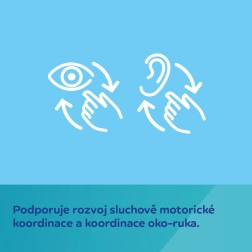 - Wielozmysłowa stymulacja – szeleszczące elementy, piszczałka i grzechotka.
