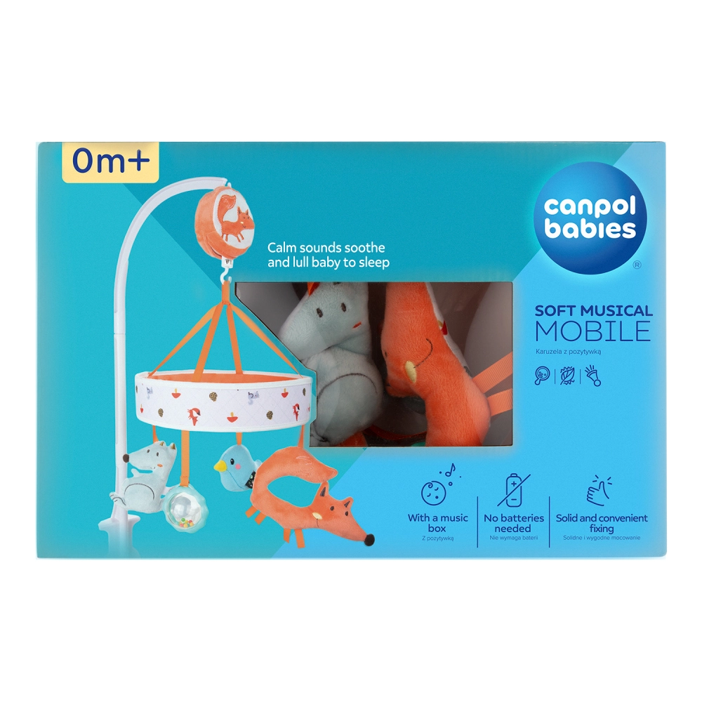 Uspokój swoje niemowlę i wspieraj jego rozwój od pierwszych dni życia dzięki pluszowej karuzeli CANPOL Babies z kolekcji FOX. Dzięki ręcznie nakręcanemu mechanizmowi nie wymaga baterii i oferuje delikatne melodie, pluszowe postacie oraz pewne mocowanie do łóżeczka. Karuzela stymuluje wzrok, słuch i koordynację oko–ręka, ułatwiając zasypianie.