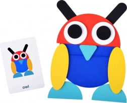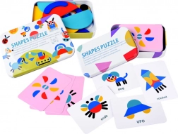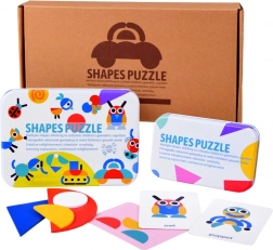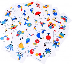 Kreatywna drewniana montessori układanka tangram rozwija logiczne myślenie, motorykę małą oraz wyobraźnię dzieci. Dzięki 36 drewnianym elementom dzieci mogą układać obrazki według 60 kart wzorów lub tworzyć własne kształty. Angielskie opisy na kartach dodatkowo wspierają naukę języka angielskiego poprzez zabawę. Praktyczne 2 kolorowe puszki metalowe ułatwiają przechowywanie i przenoszenie.