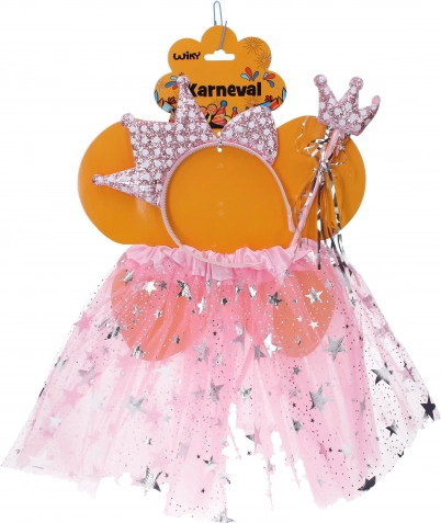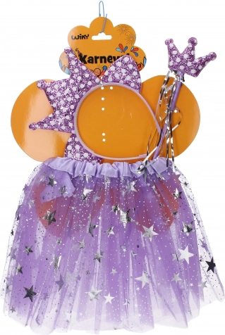 Zmień się w kilka chwil w czarodziejską wróżkę dzięki temu uroczemu karnawałowemu zestawowi. W komplecie znajduje się spódniczka, opaska z ozdobą oraz czarodziejska różdżka. Idealny na karnawały, dziecięce przyjęcia i baśniowe sesje zdjęciowe.
