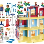 Ten duży domek dla lalek PLAYMOBIL to idealne centrum rodzinnych historii. Znajdziesz w nim kuchnię z jadalnią, salon, przestronną łazienkę, sypialnię rodziców z kącikiem do szycia oraz dwa pokoje dziecięce. Otwierane drzwi wejściowe, taras i kręte schody dodają zabawie realizmu, a działający dzwonek (2× AAA) zapewnia jeszcze więcej frajdy.