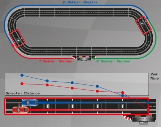 Check Lane to idealne uzupełnienie dla kierowców, którzy chcą przyspieszyć swoje przejazdy i poprawić regularność. W połączeniu z interfejsem 30369 Carrera AppConnect możesz czytelnie śledzić czasy sektorów i analizować osiągi każdego okrążenia. Elementy można umieścić w dowolnym miejscu na torze, łatwo tworząc 2–3 sektory pomiarowe.