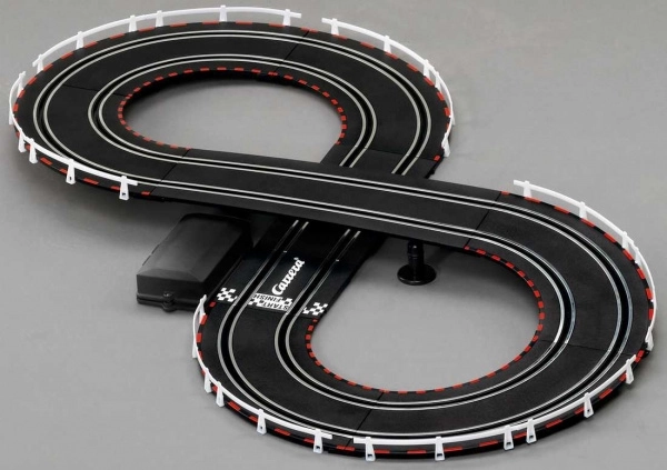 Analogowy system Carrera GO!!! z podwójnymi szczotkami kontaktowymi i magnesami w autach gwarantuje niezawodny styk i płynną jazdę. Zasilanie można wybrać bateriami (4× D, brak w zestawie) lub kompatybilnym transformatorem. Zestaw jest kompatybilny z innymi autami i elementami GO!!!, więc tor możesz łatwo rozbudowywać i ulepszać.