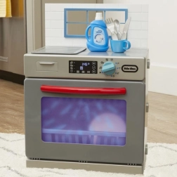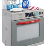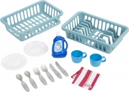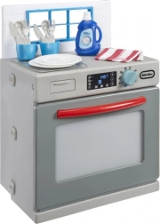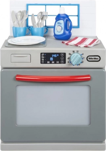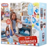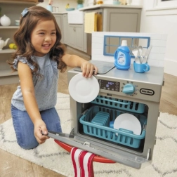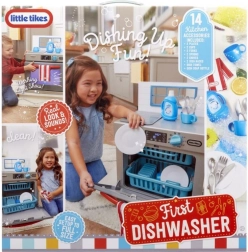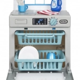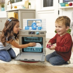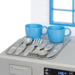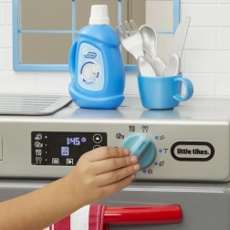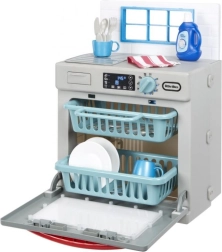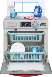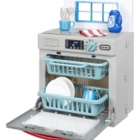 Mali pomocnicy pokochają realistyczne wykonanie szarej zmywarki z czerwonymi akcentami, która wygląda jak prawdziwe urządzenie. Po dodaniu „środka” i przekręceniu funkcyjnego pokrętła zapala się światło i uruchamiają autentyczne dźwięki mycia. Dzieci mogą otwierać drzwiczki, wysuwać kosze oraz wkładać i wyjmować naczynia, rozwijając motorykę i wyobraźnię.