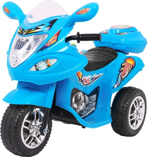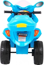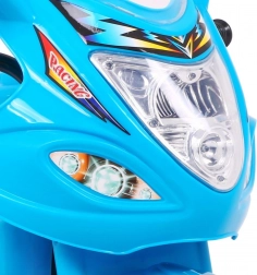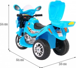 Dziecięcy elektryczny trójkołowy motocykl BJX-088 w niebieskim kolorze ucieszy małych kierowców stabilną jazdą, prostą obsługą i atrakcyjnym wzornictwem. Oferuje cichy silnik 18 W, akumulator 6 V/4,5 Ah, gumowe bieżniki kół dla lepszej przyczepności oraz przednie światła dla większej frajdy. Dzięki jeździe do przodu/tyłu oraz dźwiękom klaksonu i melodiom wspiera rozwój motoryki i wyobraźni.
