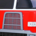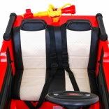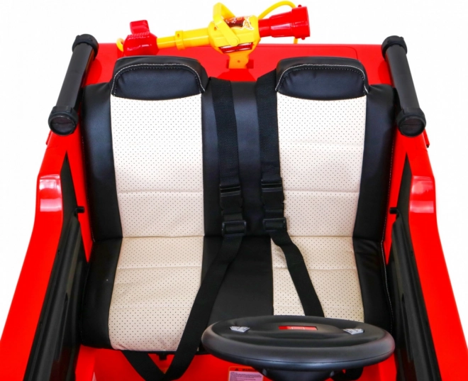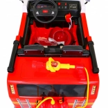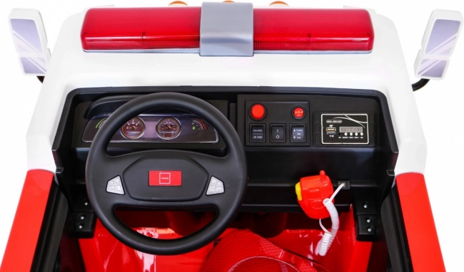 Bezpieczeństwo na pierwszym miejscu: pilot 2,4 GHz z funkcją Stop, łagodny start, otwierane drzwi z zamkiem oraz dwuosobowe siedzenie z eko skóry z podwójnymi pasami bezpieczeństwa chronią małych strażaków. Dzięki bogatemu wyposażeniu i panelowi audio (MP3/USB/SD/AUX) pojazd świetnie nadaje się do kreatywnej zabawy i rozwoju motoryki.